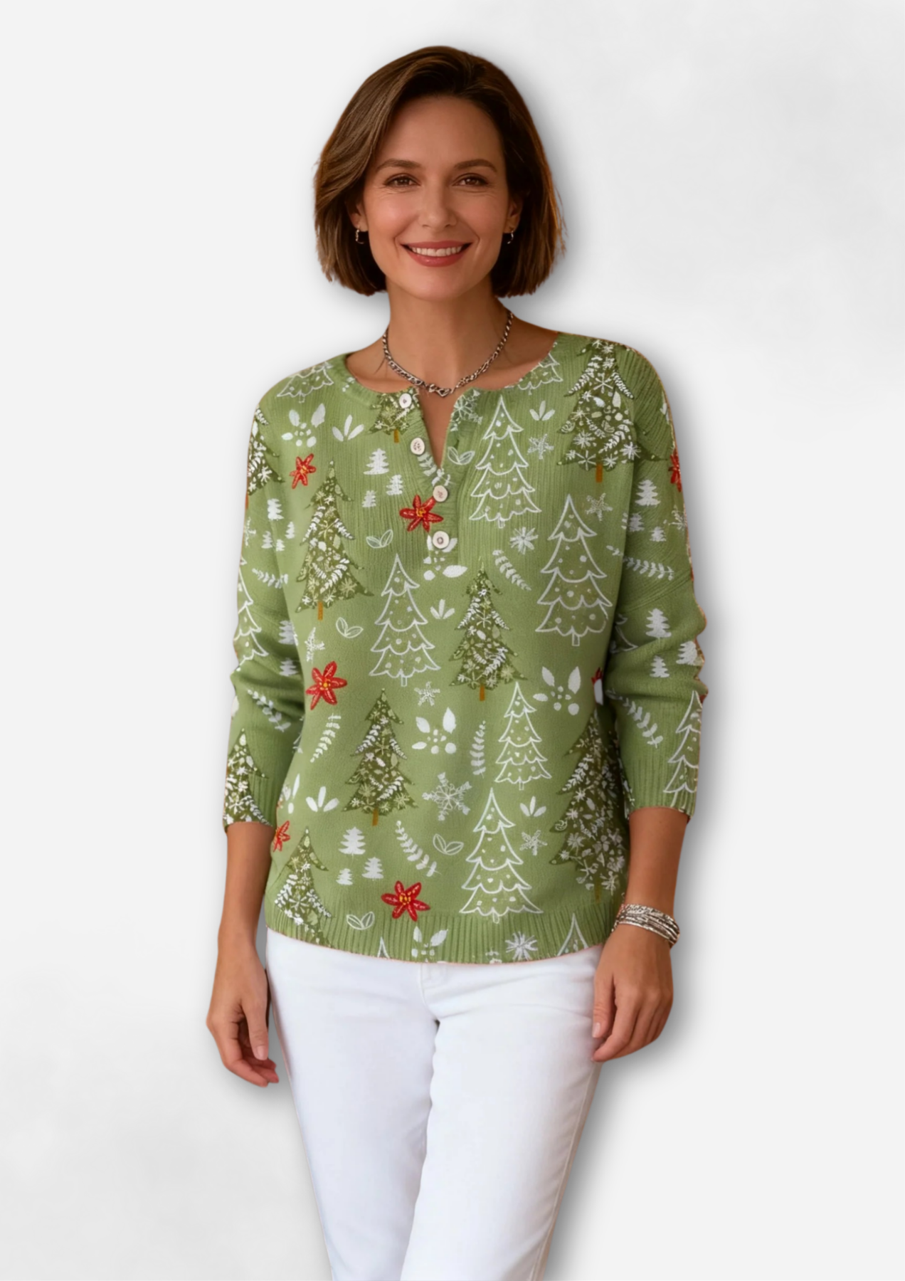• Perfecto para toda la temporada festiva – Combínalo con jeans y botas para un look cozy-chic o con falda plisada para las ocasiones más especiales.