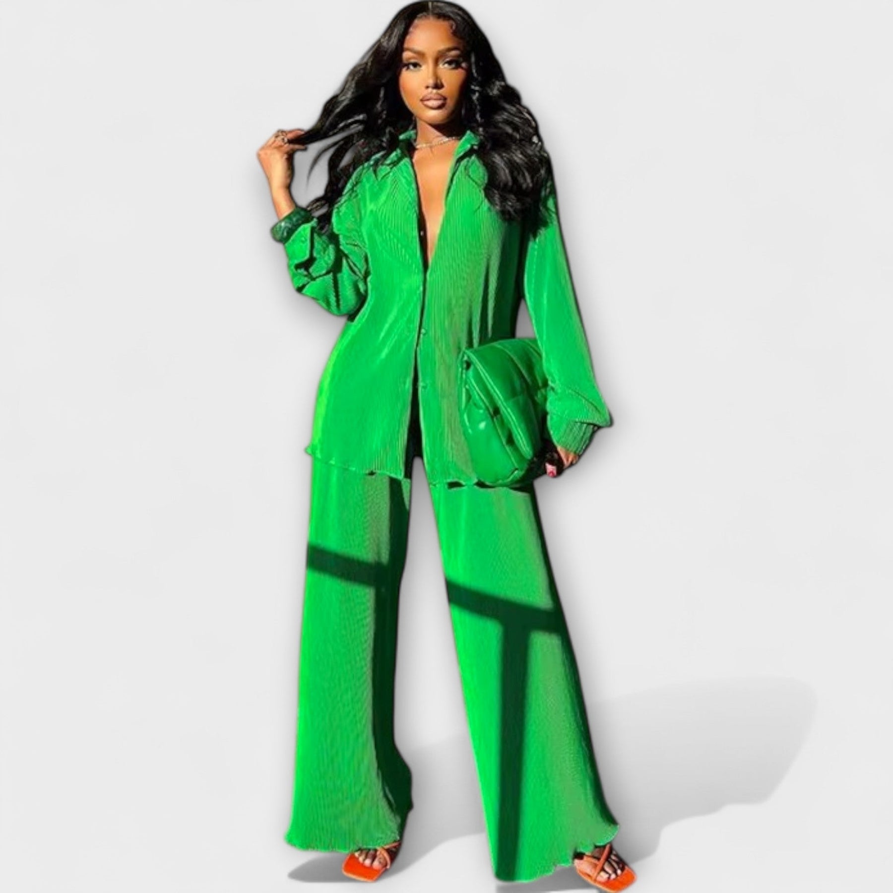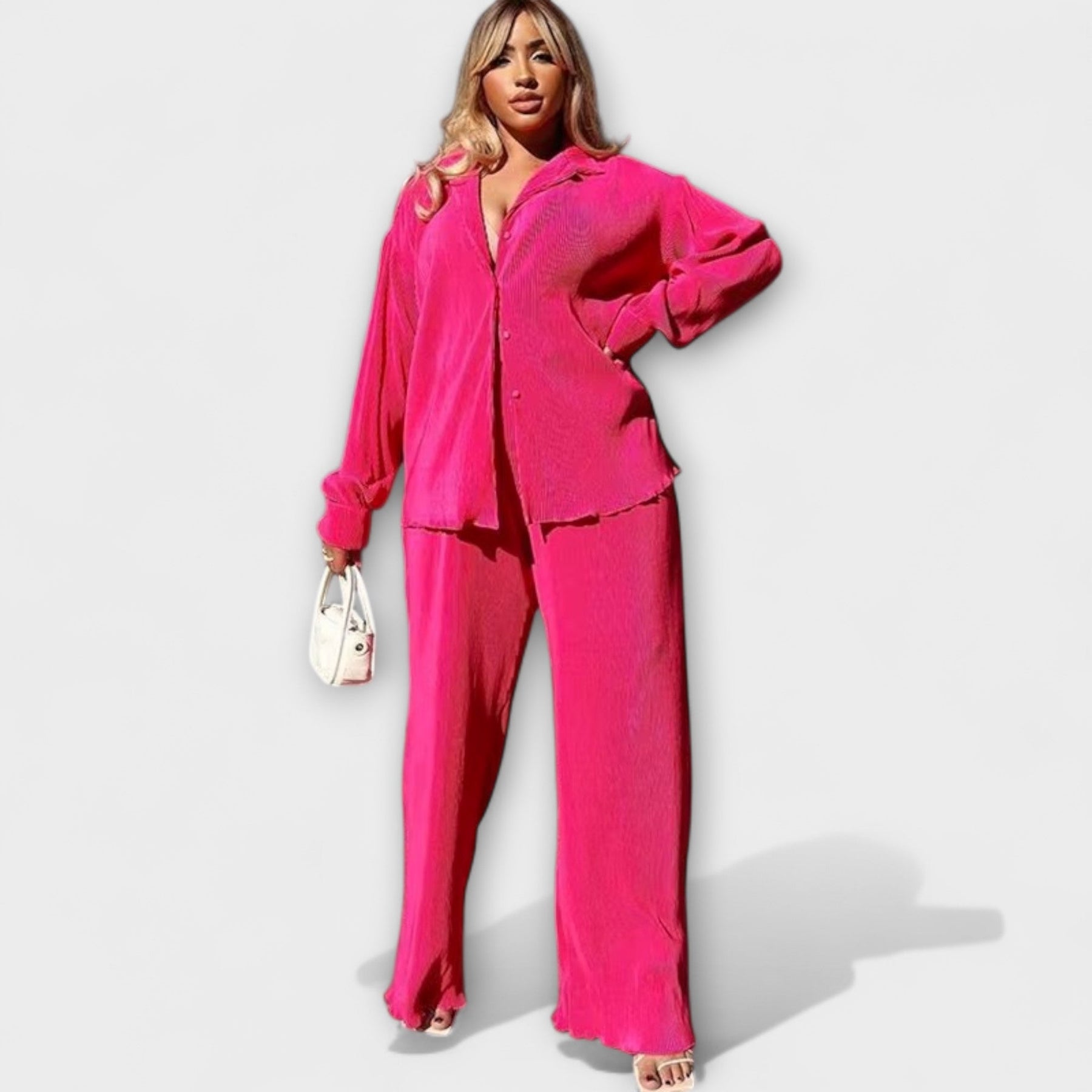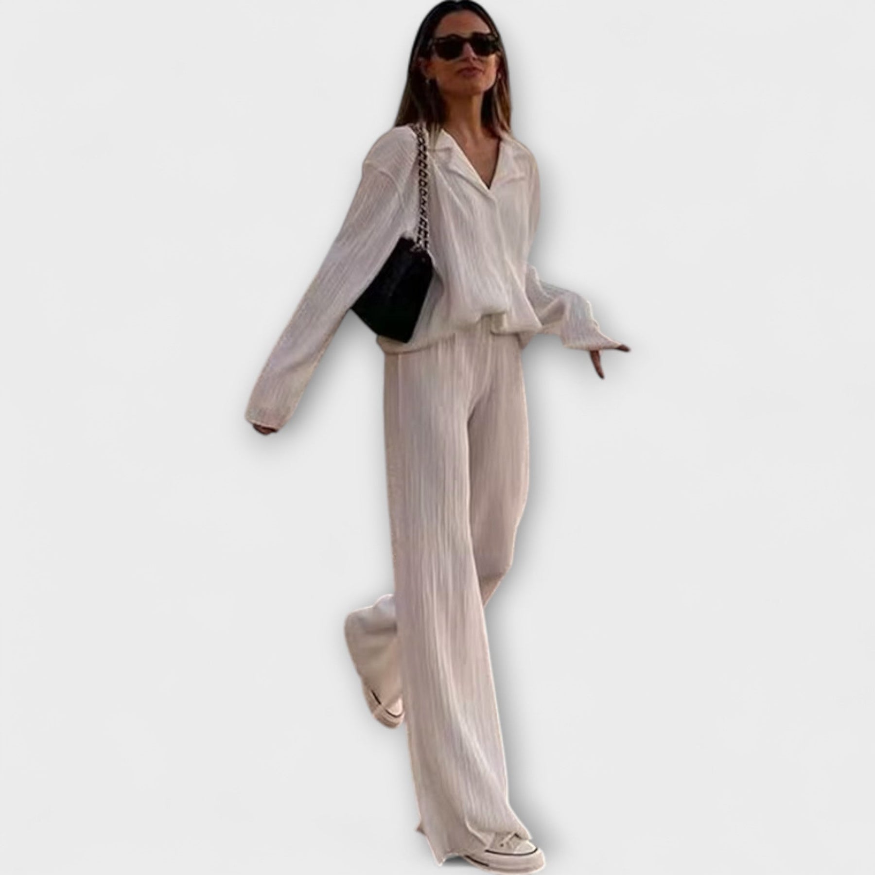 El conjunto Clio combina elegancia estilosa con ligereza veraniega. Los finos pliegues y el material aireado proporcionan una silueta femenina y un alto confort al llevarlo, ideal para días de verano relajados y looks de ocio con estilo.