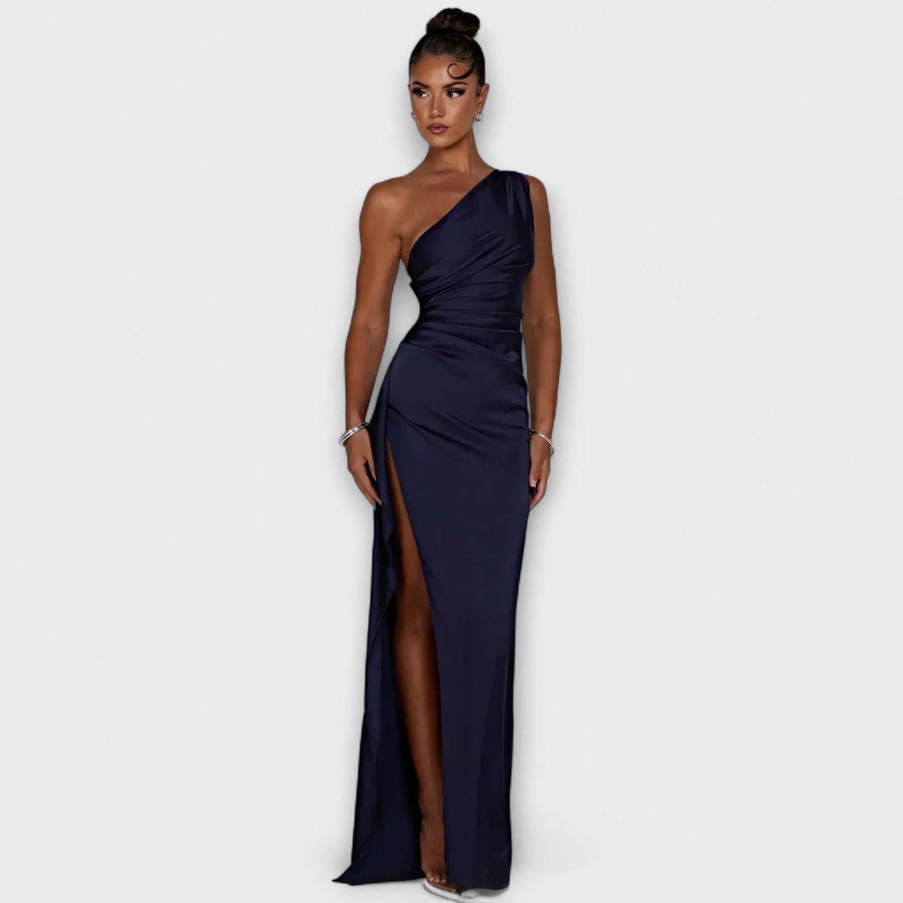 El vestido de noche Aida aporta un toque de lujo a cualquier ocasión. Fabricado en satén noble, la tela se ajusta suavemente al cuerpo y resalta la silueta femenina. Su diseño elegante con escote profundo y corte fluido hace de este vestido la elección perfecta para eventos nocturnos con estilo.